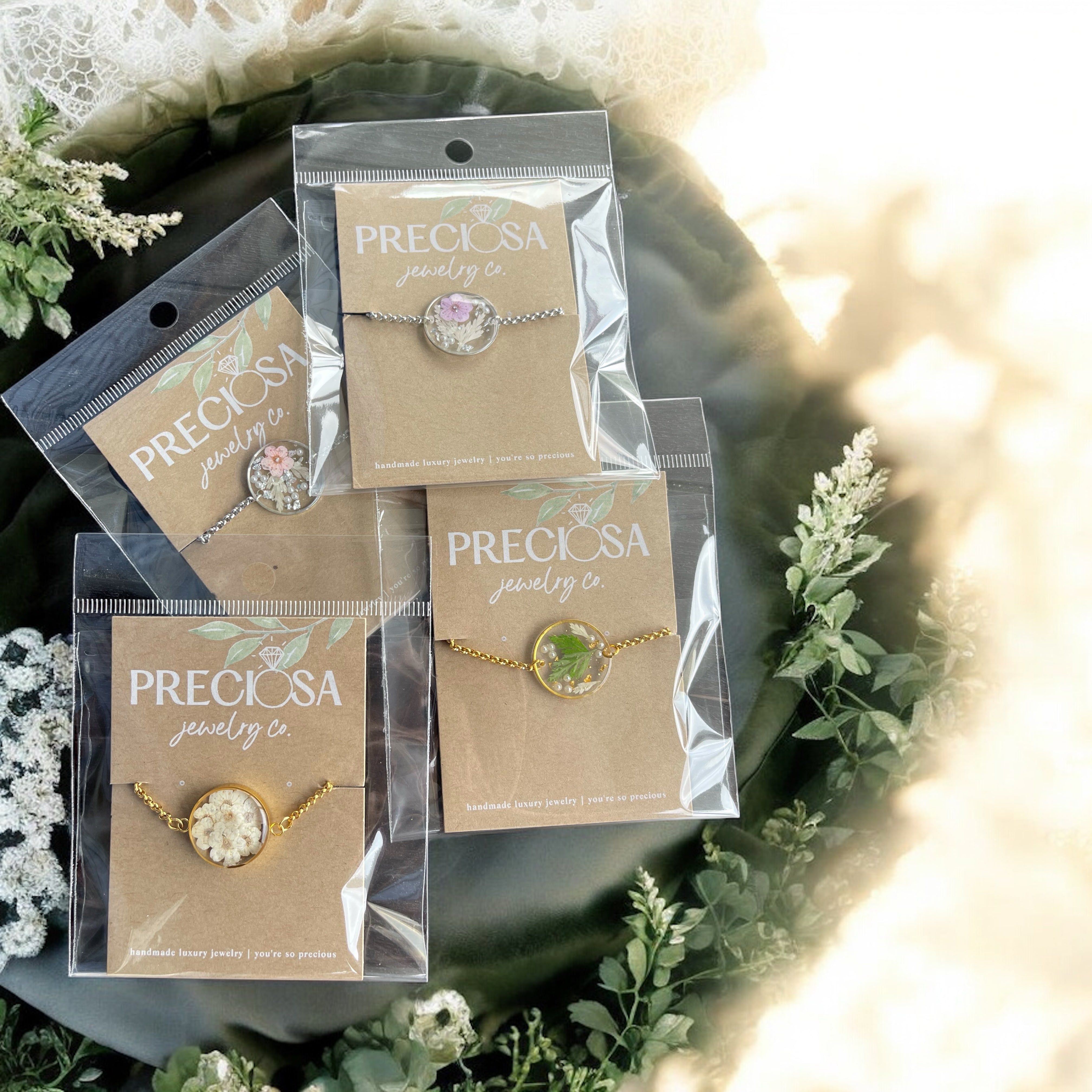 Our wearable art is thoughtfully handmade in small batches using premium semi-precious and precious metals. Each piece features hand-preserved flowers and is crafted with hours of love. Inspired by nature and rooted in romantic, dreamy boho vibes, our designs are sustainably made to feel as beautiful as they look. If that’s your style, you’re in exactly the right place. ✨🌿