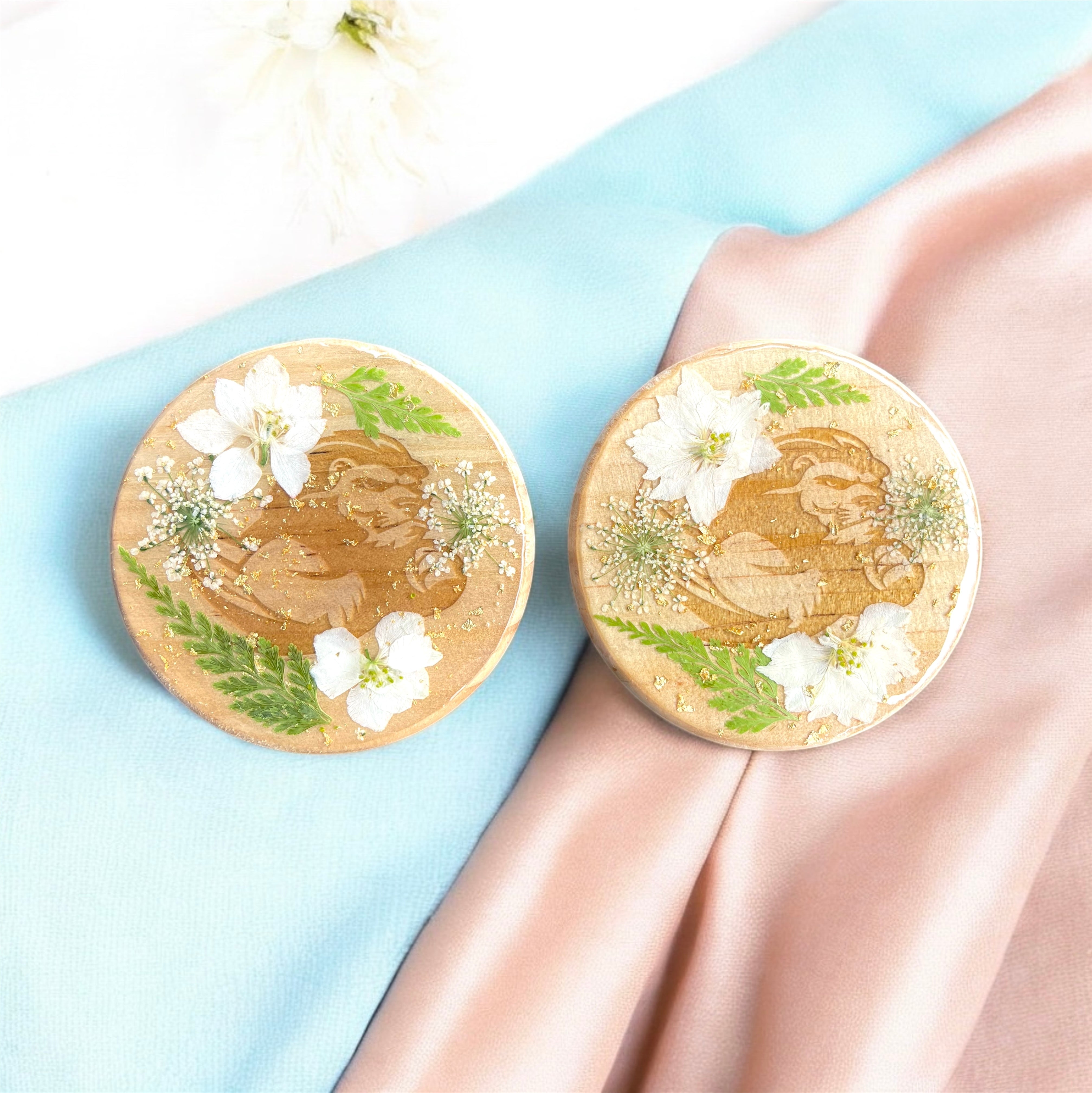 Each piece is a labor of love, handcrafted using nature's delicate beauty. We blend souffle clay with preserved wildflowers, finishing each design with precision laser engraving to create wearable art that speaks to your spirit.